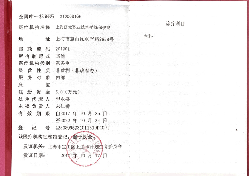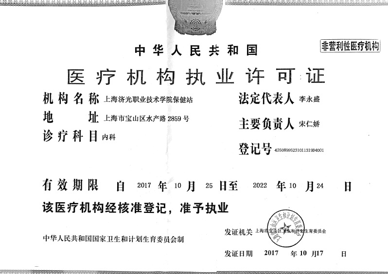 上海济光职业技术学院保健站医疗机构证