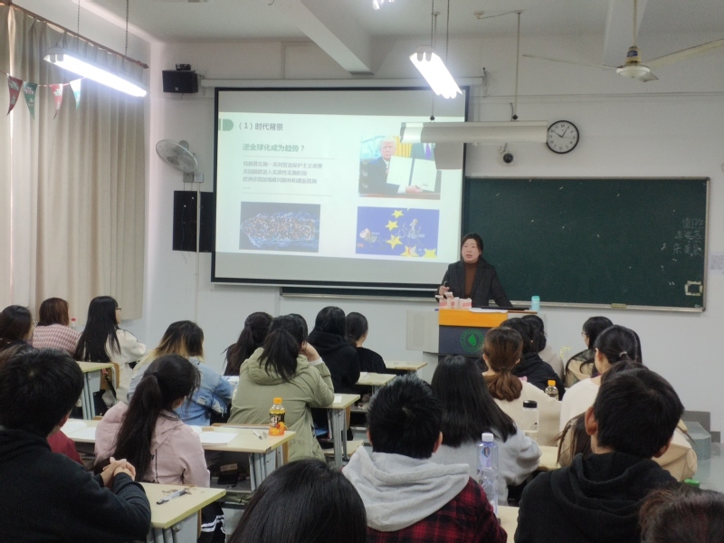 首先进行示范课讲述的是上海行健职业学院的曹娜老师,主讲内容为《毛泽东思想和中国特色社会主义理论体系概论》课第十三章第二节“推动构建人类命运共同体”。开篇她引用了今年热映的漫威电影《复仇者联盟3》的图片激发同学思考在现实生活中我们该如何维护世界和平,从而引出授课课题。随后,她选用近年来国际社会中出现的如颜色革命、热钱涌动等案例来分析全球化浪潮中出现的诸多问题,又通过中国改革开放40年以来取得的巨大成就相关数据的对比,让学生切实感受中国方案所带来的成就。同时,她利用视频和动画等多媒体技术方式向同学们讲授了人类命运共同体思想的古代文化渊源和现实实践探索。最后曹老师通过近年来中国不断扩大的朋友圈和十八大以来中国的主场外交向同学们展现人类命运共同体思想的国际影响。整堂课称同学们听的聚精会神,笔记详尽,起到了非常好的教学效果。