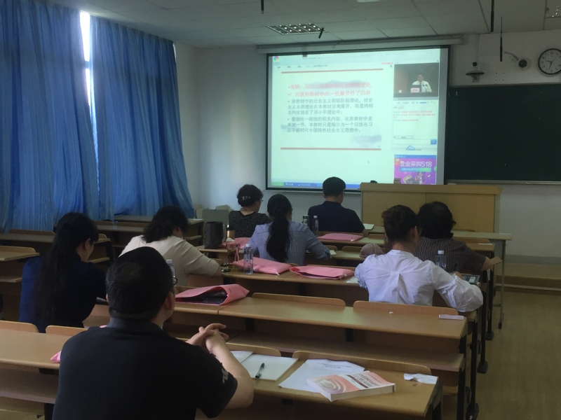 为帮助思政课教师准确把握高校思想政治理论课2018年版教材的主要内容和基本精神,切实用好新教材,发挥思想政治理论课的主渠道作用,根据教育部《关于做好高校思想政治理论课2018年版教材使用培训的通知》,我校高度重视此次新教材培训工作,在我院教学楼424教室设立新教材培训分会场。思政部专任、专职共9位教师分别于5月15日—16日、18日—19日,通过网络视频与北京主会场同步,参加了为期4天的集中培训。