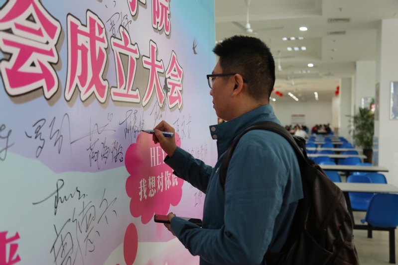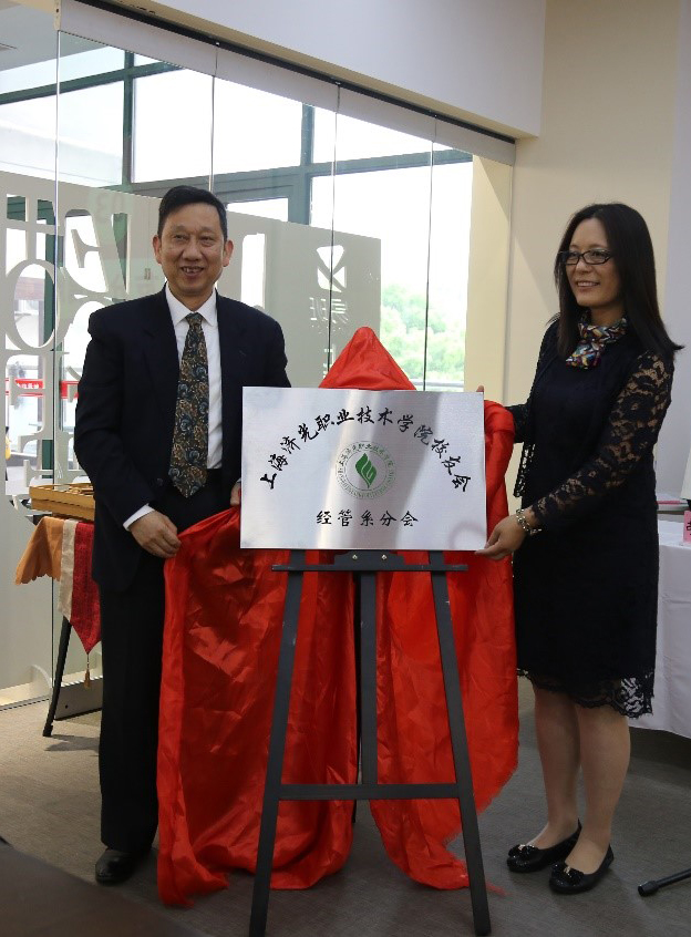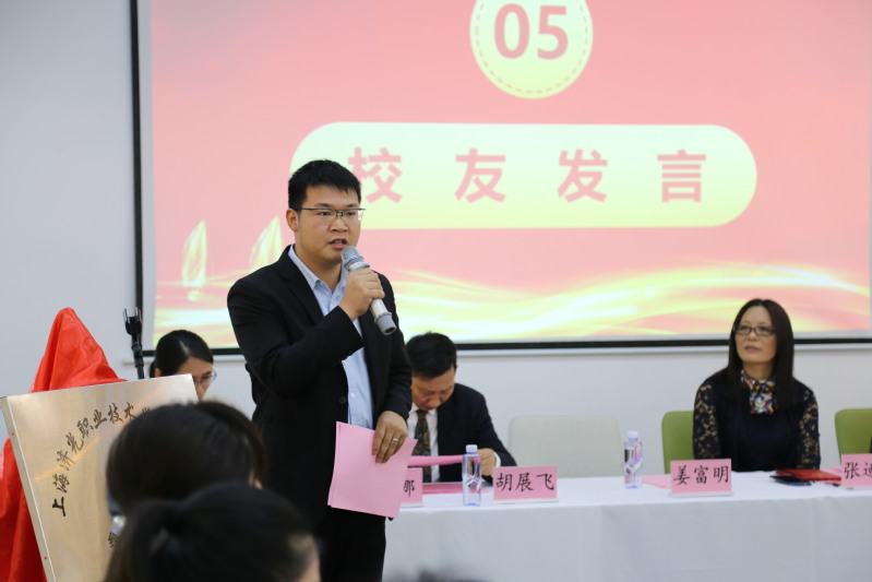 大会第二阶段,校友们与学院领导在签名墙合影留念,共同见证经管系分会成立这一重要时刻。党委书记姜富明致辞,他指出,校友与学院之间的关系是紧密结合在一起,是不可分割的一个整体,校友们以学院为荣,努力奋进,学院也会以校友为荣,加快校园的多方面建设。他希望今后学校能够和更多校友建立联系,重温青春,共同进步。随后,副院长胡展飞与经管系主任张迺英共同为校友会经管系分会揭牌。大会通过了《上海济光职业技术学院校友会经管系分会章程》、《上海济光职业技术学院校友会经管系分会校友基金管理办法》,同时还为当选的会长、副会长、上海地区会长、秘书长、副秘书长颁发了聘书。最后校友代表、上海地区分会会长曾好发言,他表示将会履行会长职责,挑起重任,继续弘扬母校的精神和优良传统,建立健全长效机制,努力将校友会建成校友的精神家园,发挥校友的资源优势,为母校的发展起到积极的作用。