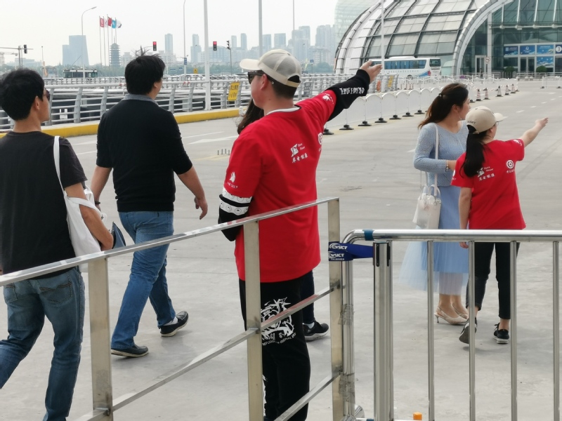 为了协助主办方维持场内外秩序,来自我院经管系国际邮轮乘务管理、酒店管理专业共60名学生志愿者统一着装,前往吴淞口邮轮港助力上海邮轮港国际帆船赛的顺利进行。上帆赛正式开幕后,志愿者们牢记工作纪律,用饱满的热情迎接前来观赛的游客。停车场上,他们顶着烈日为来往车辆指引方向,引导观众乘坐接送短驳大巴,维护秩序,避免堵塞;入场大厅内,他们协助安检人员检查观众是否携带违禁物品,并耐心地和观众进行沟通和交流,协助观众将违禁物品在场外寄存;内场中,他们挺拔着身姿,为每位观众答疑解惑,解说赛程安排,维护场内设备,引导观众前往观赛点;水域赛道旁,为了保障水上安全,确保比赛有序进行,志愿者们排岗巡逻,劝导观众文明观赛。赛场内外,都留下了志愿者默默付出的背影,他们在各自的岗位上尽职尽责,确保赛事顺利进行。