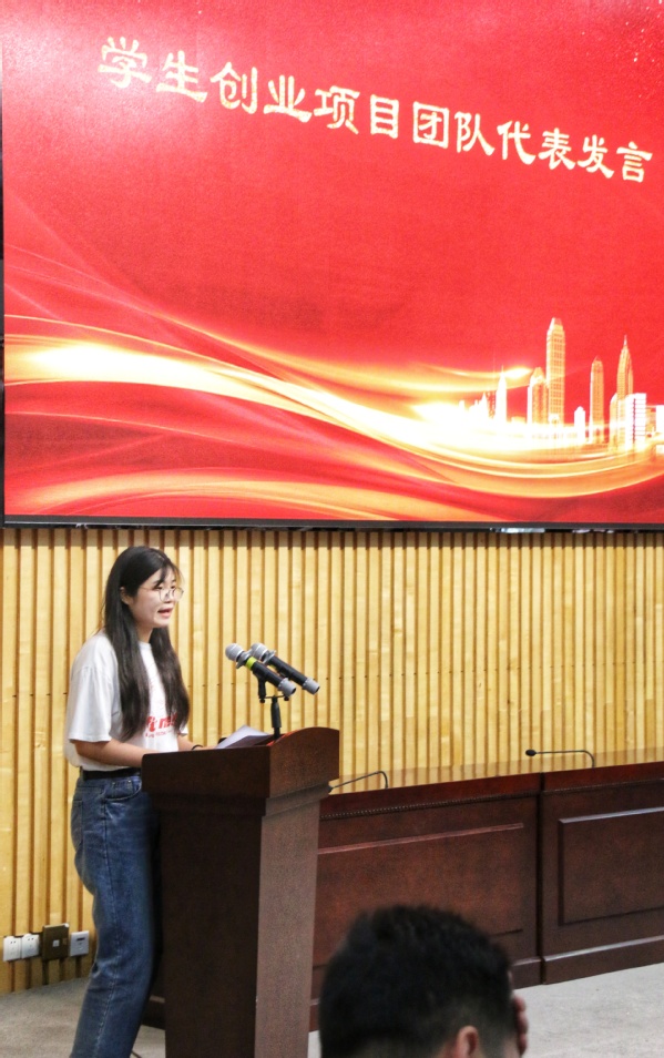 随后,创业专家对经管系佟博文团队的《I家修》项目进行了路演点评。艺术设计系余静怡同学和经管系宋爽老师分别作为创业项目团队代表、指导教师代表进行发言。姜富明书记为校内外创业导师获奖项目颁发聘书,姜富明书记、伏建文副局长以及各院系党政负责人分别为获得优秀组织奖的院系颁奖,为获奖学生创业项目团队颁奖、颁发创业助力金。