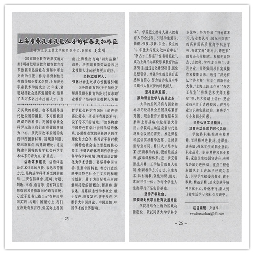《宣传通讯》刊登我院党委书记姜富明文章《上海培养技术技能人才的任务更加艰巨》