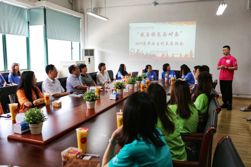 28日下午,在学生活动中心举行了“我与校长面对面”茶话会,院长李永盛、党委书记姜富明与毕业生代表们共聚一堂,共话师生情谊。毕业生代表们讲述了自己三年学习生活和实习中的点点滴滴,抒发浓浓的校园情怀和对未来的憧憬。2003届建筑设计专业薛敏达、2005届旅游管理专业王嘉琦、2015届建筑工程技术专业王菲三位校友代表以自身工作经验对毕业生们提出希望和建议,希望毕业生们能够在未来岗位上能够把握机遇、吃苦耐劳、求真务实,在专业知识上求精通、求博学,获得精彩的人生。院领导与毕业生们亲切交流,并提出殷切希望。李永盛院长为毕业生们谈了学院的办学历程、对投身教育、人才培养的追求,“三全”育人理念、以学生为本的办学初心,以及学院校友会的成立和未来规划,并希望学子们毕业后常回母校看看。姜富明书记则以格言激励大家,希望学子们能够树立理想信念、树立远大目标,做到平凡、平淡、平实,孜孜以求,做到终身学习、终身奋斗。最后,院领导向毕业生代表们赠送毕业纪念品并热情交谈。