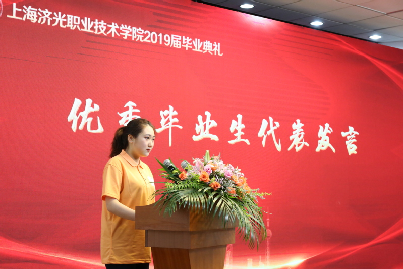 教务处长、建工系主任柴瑞老师作为教师代表发言,希望学生们在未来的工作生活中踏实肯干、吃苦耐劳,祝福学子们前程似锦;2019届艺术设计系鲁怡婷同学作为优秀毕业生代表发言,对母校和老师致以最衷心的感谢和最崇高的敬意,希望毕业生们能够在未来找到自己的方向,努力成为最好的自我;家长代表建筑系王伟璇家长发言,表达了看到子女成长成才的欣慰和喜悦,祝愿学院桃李芬芳,蒸蒸日上。