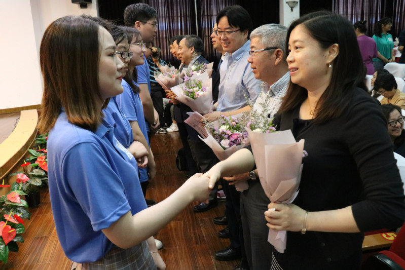 随后,2019届毕业生代表向教职工及家长代表献花,毕业生们与教师和家长深情交谈,表达了感激和不舍之情。