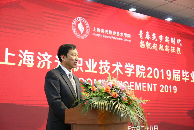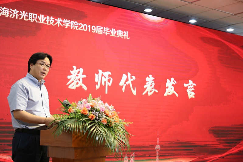 院长、党委副书记李永盛代表学院向广大毕业生致以热烈的祝贺,对辛勤付出的老师和家长表达了衷心的感谢和由衷的敬意。李院长在致辞中指出,学院在济光学子们的奋斗和见证中不断壮大、放射光芒,凝聚着大家的智慧、勇敢、奋进,他同时寄语毕业生们,希望大家勇于担当、学会感恩、奋力拼搏,以进取心服务社会,以赤子心报效国家,让人生在爱国筑梦中挥洒豪情。随后,李永盛院长向2019届优秀毕业生代表颁发毕业证书。