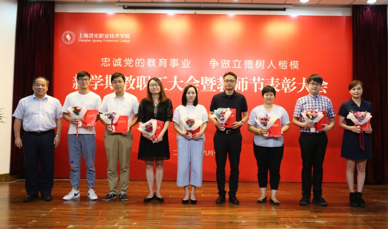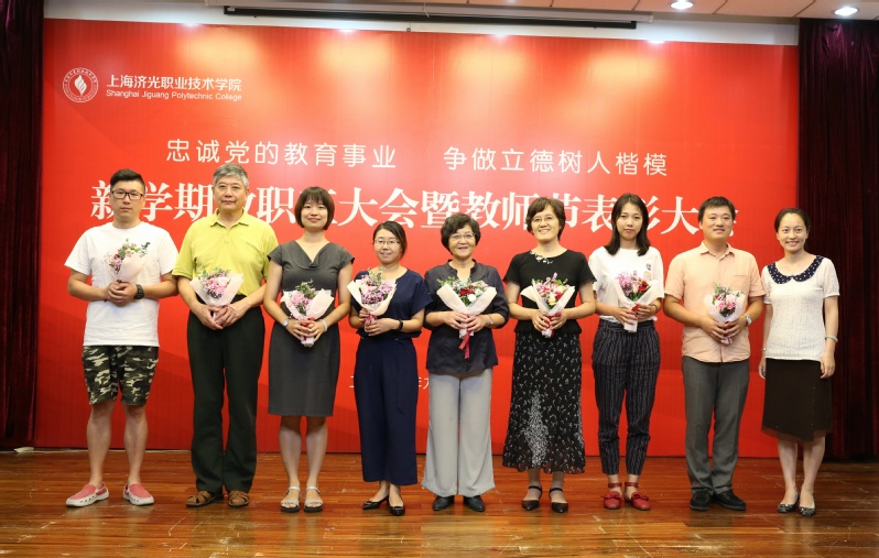 姜富明书记宣布会议正式开始并传达2019年秋季上海高校党政负责干部会议精神。随后,全院教职工共同观看视频《忠诚党的教育事业 争做立德树人楷模——学院2018-2019学年教职工教书育人成果集锦》,回顾了过去一年以来济光园丁们在教育教学成果和收获,院长助理、院系部负责人为获得市级以上荣誉的教职工代表献花。