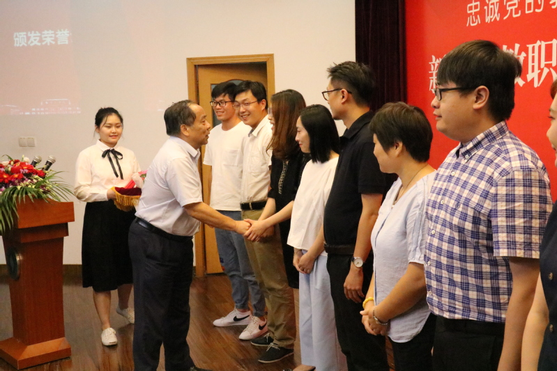 胡展飞副院长宣读学院2018-2019学年“优秀教师”、“优秀辅导员”、“先进教育工作者”表彰的决定,李永盛院长为“优秀教师”、“优秀辅导员”、“先进教育工作者”教职工颁发荣誉证书。