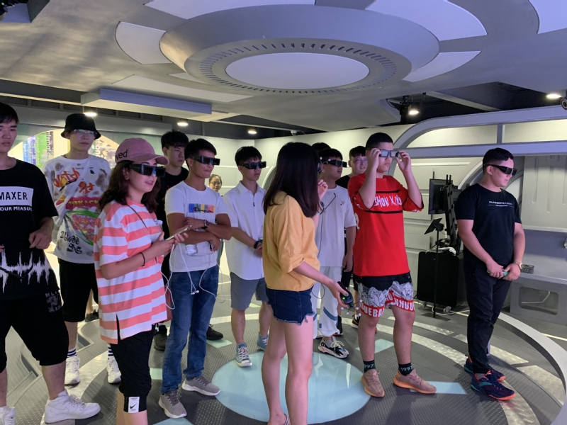 同学们首先参观了中国首家3D打印博物馆,负责讲解的企业老师非常仔细地给同学们介绍了3D打印的起源、发展、应用等相关内容,让同学们对3D打印技术有了深入的了解,开拓了视野。随后,同学们还在企业老师带领下参观了VR(虚拟现实)科技馆。在VR科技馆中,同学们被入口处的导引机器人吸引,纷纷感慨人工智能AI的发展神奇而不可思议,在VR数字展厅同学们体验了3D虚拟世界的风采,用VR技术对军事航母模型的拆解,让学生了解到VR在军事领域的广泛应用。在二楼VR数字虚拟现实体验中心,同学们带上VR头盔感受虚拟世界的美,在虚拟世界里参观了著名的山西古建筑群——乔家大院,领略到VR虚拟场景独特的魅力。
