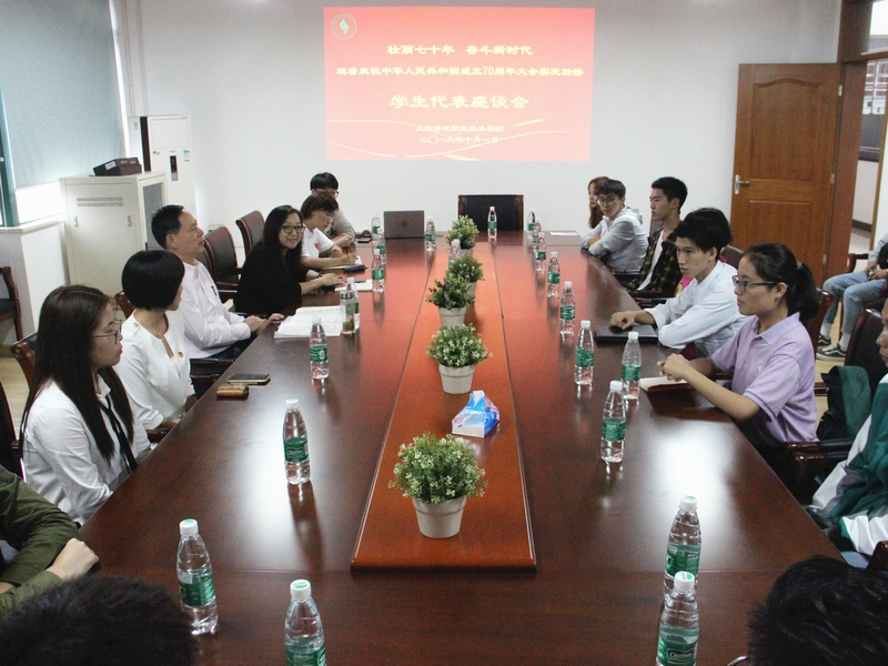 阅兵仪式观看结束后,学院召开了学生座谈会,纷纷表达了肩负未来国家和民族富强的责任的决心,将为真正实现科技强国、军事强国、经济强国贡献出自己的力量。党委书记姜富明在座谈会上发表了观看新中国成立70周年庆典感想,他指出,我们更要坚定“四个自信”,增强“四个意识”,做到“两个维护”,始终不忘教育初心,牢记“立德树人”根本任务,在新的长征中,以坚如磐石的信心、只争朝夕的干劲、坚韧不拔的毅力担当起时代责任,贯彻落实总书记重要讲话精神,为国家培养德智体美劳全面发展的社会主义建设者和接班人。