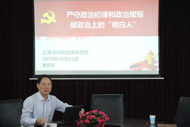 党委书记姜富明以《严守政治纪律和政治规矩 做政治上的“明白人”》为题,引经据典,从讲规矩、守规矩历来是中华民族的优良传统说起,并且指出讲规矩、守规矩贯穿于我党的各个历史时期。他从中国共产党成立就十分强调立规矩、讲纪律,到中共二大通过的中国第一部《中国共产党章程》,再到著名的“三大纪律、八项注意”中第一条纪律“一切行动听指挥”即政治纪律,说明我党为党员立下了严格的党内规矩,使我们党和那些只在口头或书面上讲讲马克思主义的松散学术团体之间划清了界限,历史告诉我们,中国共产党从小到大、从弱到强,最终成为在今天长期执政的马克思主义政党,靠的就是确保全党统一意志、统一行动、步调一致前行。