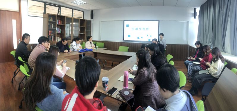 在纵瑞昆主任简短的说明介绍之后,应用文写作教研室主任姜黎黎老师进行了说课展示。她从课程性质、教学目标、教学资源、学情分析、教学重难点及解决方式、课程评价方式、反思七个方面对课程进行了全面展示,辅以多媒体演示和流利解说,淋漓展现了先进的教学理念、设计思路。随后,纵瑞昆主任和两部教师对她的说课进行了点评。教师们对姜黎黎老师今天的说课都给予了充分肯定,同时也提出了中肯的建议。