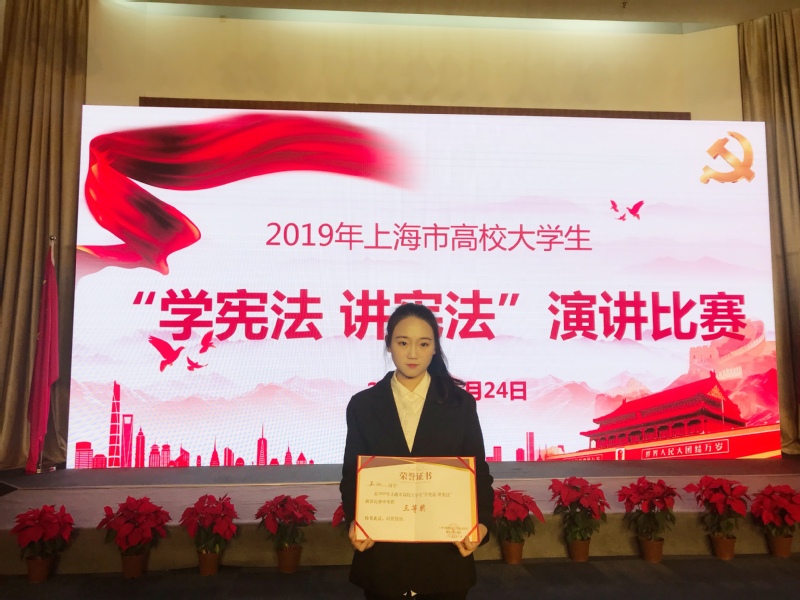 喜讯:我院护理学院王沁同学荣获2019年上海市高校大学生“学宪法 讲宪法”演讲比赛三等奖