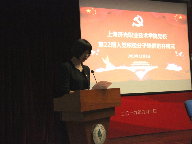 11月1日下午,上海济光职业技术学院党校第22期入党积极分子培训班开班仪式在报告厅举行,经各院系推荐筛选本期党校共有100名学员参加培训。党委书记姜富明、组织部长姚桂芳、各党总支及直属党支部书记出席了开班仪式,仪式由党委组织员徐珺烨主持。