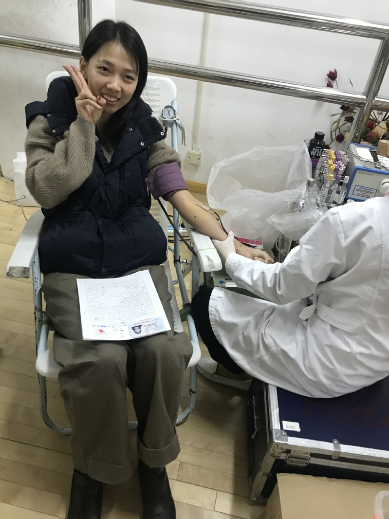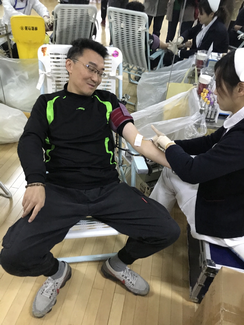 组织部徐珺烨:赠人玫瑰,手留余香。把爱心传递给需要帮助的人,我觉得是一件特别有意义的事。每年看到那么多勇敢的孩子撸起袖管,献出自己的鲜血,很感动。今年我也和学生一起,成为这其中的一员,不忘初心,用自己的实际行动来帮助他人重获生命的希望。今天让我很难忘!