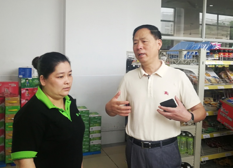 在教工宿舍楼,姜书记对军训教官宿舍改造装修情况表示满意,要求宿管员正在保洁的物业员工精细打扫认真检查宿舍设施设备的完好率,为军训教官营造一个良好的生活环境。在学校食堂检查时,姜书记听取了食堂经理办好军训餐饮准备工作汇报,对加工间、库房和就餐环境的卫生情况表示满意,要求后保处和食堂一定要全力以赴做好军训期间的伙食工作,对进货、加工、消毒环节严格各把关,确保为参训学生和教官提供可口、卫生、安全饭菜并做好防暑降温工作。在学生宿舍仔细询问了走读参训学生的宿舍安排情况,叮嘱值班员要认真做好高峰期电梯使用的引导分流工作,做好夜间急修和水电保障工作。在教育超市要求备足军训期间学生必须的饮料食品冷饮水果及生活用品并保证安全卫生。姜书记还巡视了校园环境,慰问了后勤服务岗位员工。