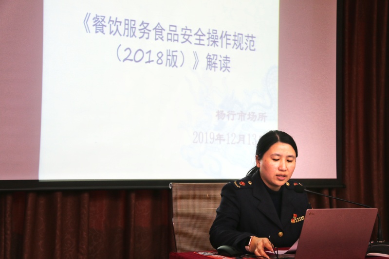 民以食为天,食以安为先。食品安全关系师生身体健康和生命安全。为贯彻落实新《食品安全法》,2019年12月13日下午,学校邀请杨行市场监督所副所长徐莉蓉为全体餐食堂员工和咖啡厅实习同学进行《餐饮服务食品安全操作规范(2018版)》解读培训。