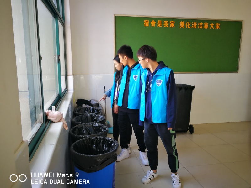 为落实垃圾分类工作规范长效管理,后保处组织了垃圾分类巡检志愿者队伍,不定期在校园、教学楼、学生宿舍巡查垃圾分类情况,宣传垃圾分类知识,劝阻乱扔垃现象,保证垃圾分类纯净度。