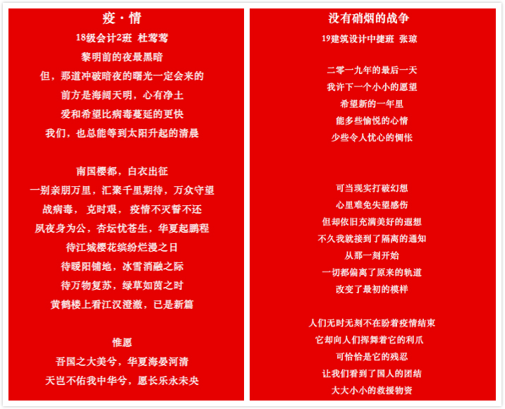 济光学子们以笔为剑,为疫情而战,用自己的作品去感染别人,给同样在奋战的人们带去正能量的感受。他们坚定自己心中的信念,用自己的表达方式记录下这些日夜的感动与我们中华儿女的凝聚力,用自己的作品致敬在这场战役中每一个为之付出的战士。