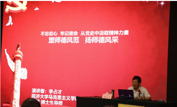 6月20日上午,我院中层干部和骨干教师能力提升研修班第十一期培训举行,我院“名师李占才工作室”负责人、同济大学马克思主义学院名师李占才教授作题为《不忘初心、牢记使命,从党史中汲取精神力量——塑师德风范、扬师德风采》的专题报告。