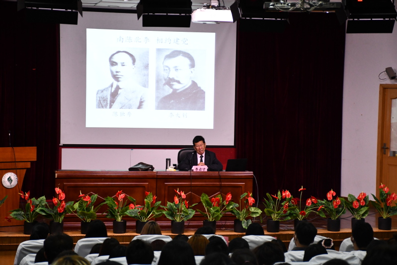 李占才教授从“祖辈父辈的初心和担当”、“什么是新时代”、“新时代青年人的责任和担当”三个维度分析了中国革命的发展历程,他通过“南陈北李相约建党”、“遵义会议”等故事精辟独到地总结了共产党人的初心和担当,并指出每一代人都面对着不同的问题与责任,没有前一代人的担当就没有后一代人的发展,唯有解决问题,担当起自己的责任,才能推动社会发展向前。作为新时代的大学生应该认真踏实、正确认识社会局势,尽快确立个人理想。同时,李教授还寄语同学们凡事要先从我做起,从小事做起,正视时代,勇于担当,做新时代中的新青年,推动2035年基本实现社会主义现代化,坚持“撸起袖子加油干”,带动身边人,发挥榜样力量。李教授也以他的切身经验为在场同学答疑解惑,用生动有趣的例子深入浅出地阐释了梦想和生活如何取舍,将平时难以理解的内容讲的生动有趣,给大一新生上了一堂实实在在的第一课。