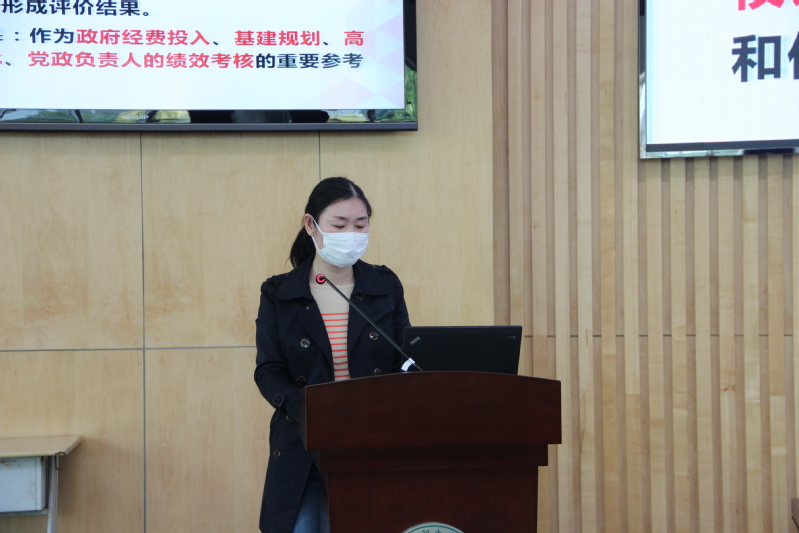 会上,质管办副主任王娟作《高校分类评价研究报告》,对上海高校分类评价工作进行介绍,对我院分类评价指标得分情况进行详细分析,并围绕学生发展、管理水平、师资队伍建设、教学改革等四方面对学校下一步工作提出建议。