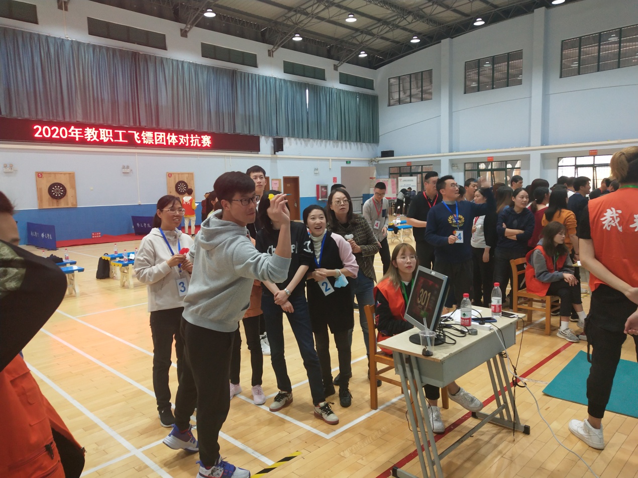 11月6日由学院工会、基础教学部部门工会主办的2020年教职工飞镖团体对抗赛在体育馆二楼举行。