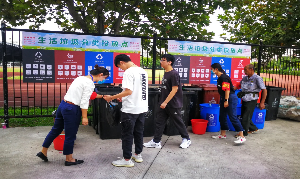 目前学校已组织了学生和教工志愿者队伍,校工会组织的志愿者队伍安排机关干部职工值班巡视,引导学生正确投放生活垃圾形成制度。每天早晨和晚上都由学生志愿者轮流到垃圾集中投放点督导值班。我们物业保洁人员和宿舍值班员、食堂管理员都佩戴统一的垃圾分类督导员袖标在公共区域、宿舍、食堂巡视督导,营造一个人人参与垃圾分类,以自觉垃圾分类为荣乱扔垃圾为耻的良好氛围。