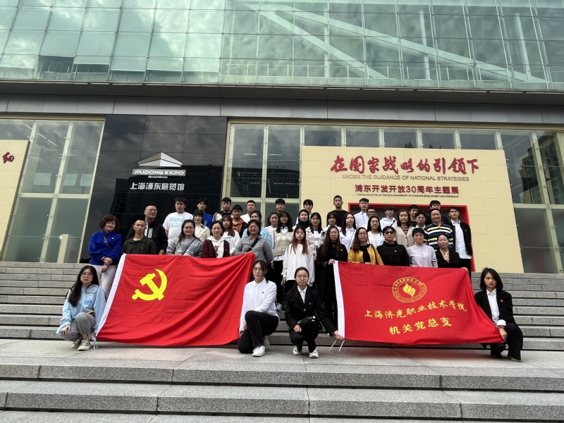 2021年10月29日,上海济光职业技术学院机关党总支第三党支部组织策划了“看浦东发展 悟开放征程”的学习《习近平在上海》主题党日实地参观活动,机关党总支部分党员同志和经管系党总支学生支部入党积极分子一同参与,共计40余名成员。在上海浦东展览馆内参观了“在国家战略的伟大旗帜下”为标题的浦东开发开放30周年的大型主题展。