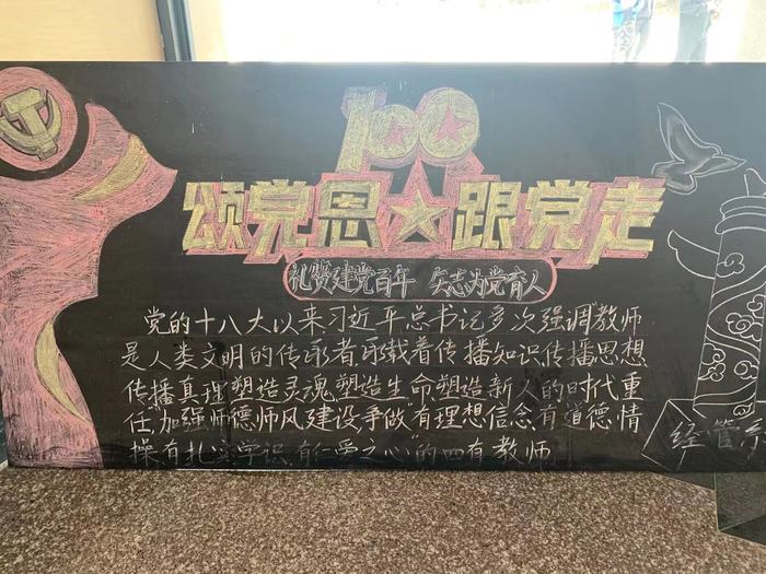 通过此次黑板报展示活动,引导我们深刻认识到历史和人民选择中国共产党的历史必然性,同时作为一场生动的爱国主义和党史学习教育、增强了教职工学党史、悟党史,与祖国共奋进、与党同发展的时代精神。