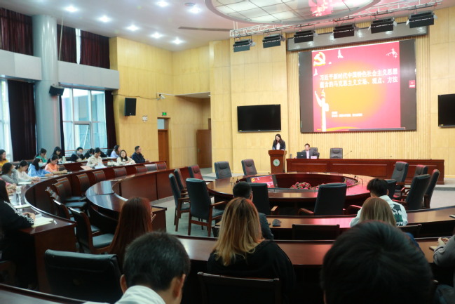 为深入贯彻落实习近平总书记在党史学习教育动员大会上的重要讲话精神,坚持做好“三进”育人工程,4月26日,我院“李占才工作室”负责人,同济大学马克思主义学院教授李占才教授在圆形会议室为全院学生上了一堂题为《习近平新时代中国特色社会主义思想蕴含的马克思主义立场、观点、方法》的直播课。各分会场通过 “雨课堂”在各教室进行转播。