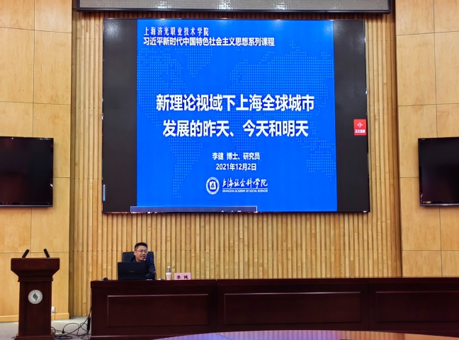 12月2日下午,上海社会科学院城市与人口发展研究所区域经济研究室主任李健博士在圆形会议室为我院师生作“新理论视野下上海全球城市发展的昨天今天明天”的课程交流,此次学习是《习近平新时代中国特色社会主义思想概论》课系列课程之一,思政部教师、学生代表参加学习。