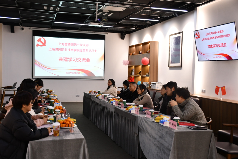 12月24日,上海古猗园第一党支部和经管系党总支共建学习交流会在咖啡厅实训室召开。古猗园副园长、工会主席林晓桦,古猗园文保科科长、第一党支部书记孙佳,古猗园经营管理科科长、工会副主席顾月珍,经管系主任张迺英、副系主任林俊、副系主任李娜及双方各支部党员们出席了本次座谈会。会议由经管系党总支书记胡春宝主持。
