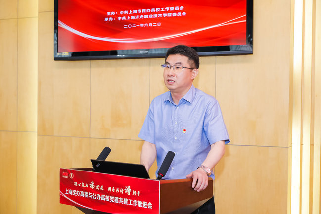 2021年6月2日,上海市民办高校党工委在我院召开了上海民办高校与公办高校党建共建工作推进会,进一步总结和梳理上海民办高校党建共建经验。上海市教卫工作党委副书记、上海市教委副主任闵辉,同济大学党委常务副书记冯身洪,上海市民办高校党工委副书记王庆出席了会议,上海17所民办高校党委书记、相关职能部门负责人参加了会议。本次会议由我院承办,党委书记姜富明主持。
