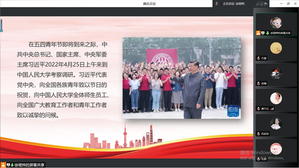 5月7日晚,护理学院学生党支部以线上会议的形式在腾讯会议召开了“砥砺奋进,不负韶华”专题组织生活会,会上师生党员首先学习了习近平总书记在中国人民大学考察时的重要讲话精神以及习近平总书记向首届大国工匠创新交流大会开幕式的致辞内容。其后,31位与会成员针对此次学习的所思所感进行了交流分享。