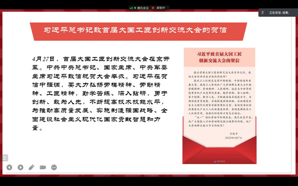 5月8日上午,机关第一党支部采用腾讯会议软件平台以线上会议形式,组织党员结合疫情防控工作和自身工作实际,就学习传达习近平总书记在中国人民大学考察时的重要讲话和习近平总书记致首届大国工匠创新交流大会的贺信内容,进行了心得体会交流发言,学校党委副书记刘丽以普通党员身份参与支部讨论,党员们纷纷结合自身的岗位工作,从疫情防控、党员的初心使命等内容展开分享交流,会议气氛十分热烈。