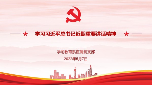 5月7日,学前教育系直属党支部召开专题组织生活学习会,徐珺烨书记带领全体党员认真学习了习近平总书记发表的重要讲话。她指出,学前教育系每位教师都要认真学习贯彻习近平总书记重要讲话精神,切实增强学习贯彻的政治自觉和行动自觉,将重要讲话精神作为党支部、各团支部、各教研组的重要学习内容,通过座谈会、主题班会、团日活动等多种形式,引导全体党员、青年师生开展学习与讨论。