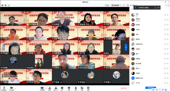 5月6日晚,经管系党总支在腾讯会议室开展“同抗疫齐奋进共话责任与担当学习习近平总书记重要讲话精神”为主题的专题组织生活会。会议围绕传达学习贯彻中央政治局常委会会议和市委常委会扩大会议精神、学习习近平总书记在中国人民大学考察时的重要讲话和习近平总书记致首届大国工匠创新交流大会的贺信内容,开展深入学习,并结合校园疫情防控和近期重点工作开展交流,分享抗疫感悟,会议由党总支书记胡春宝主持,全体师生党员参加。