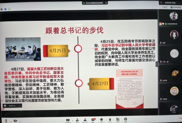 5月6日中午,建筑系教工党支部全体党员齐聚线上,召开“一鼓作气乘势而上 ·打赢大上海保卫战”组织生活会。支部书记宋雯珺老师带领大家围绕本次组织生活会的主题共同进行了学习。通过对讲话精神的学习与讨论,全体党员教师进一步统一思想、提高认识,更真切体会到习总书记对大国工匠的殷殷嘱托。宋雯珺老师表示,习近平总书记深刻指出了新时代中国青年的奋斗目标和前进方向,结合大家的教学实践,对怎样讲好新时代思政课、创新课程思政,提出了新的更高要求和指明了努力方向。作为职业教育的一份子,我们责任重大。必须不断奋进,为祖国培养合格的技能型人才。
