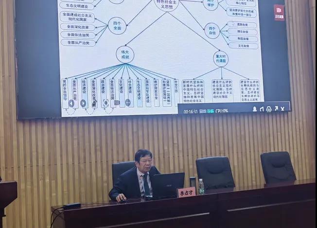 报告会上,李占才教授从习近平新时代中国特色社会主义思想总体构架出发,系统论述了习近平新时代中国特色社会主义思想所蕴含的马克思主义的立场、观点和方法。李教授通过建党初期的革命先辈的英勇事迹以及历次战争中人民的选择和改革开放的创举指出,习近平新时代中国特色社会主义思想的基本立场就是拥有“坚如磐石的理想信念”、“以人民为中心的根本政治立场”和“坚持实事求是、与时俱进的理论品格”。报告会进一步激发了我院学生学习习近平新时代中国特色社会主义思想的热情,同时也鼓舞了我院学生“请党放心,强国有我”的决心和信念。