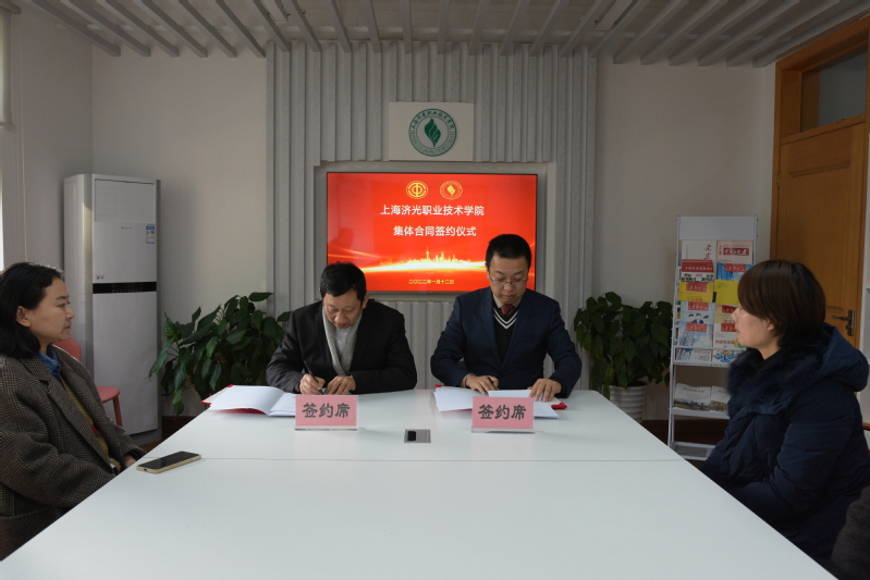 学校召开四届二次双代会,学校行政方与职工方首席代表签订《上海济光职业技术学院集体合同》