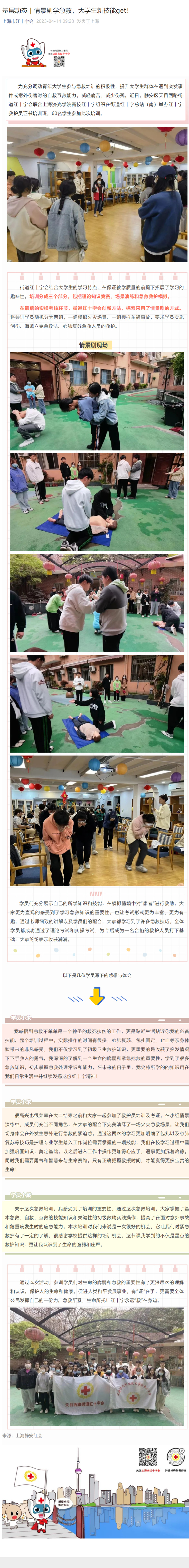 上海红十字会微信公众号对我校联合静安区天目西路街道举办红十字救护员证书培训班活动进行了专题报道
