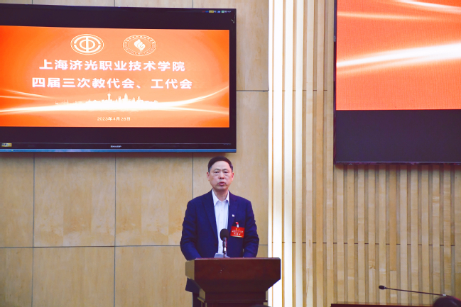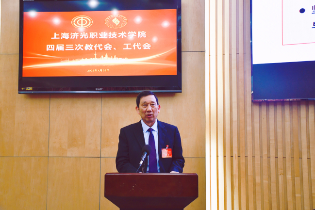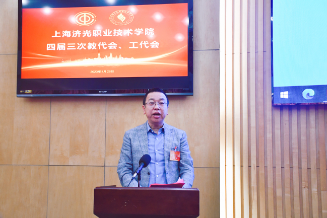 党委书记姜富明作了总结讲话。姜书记指出,要发挥好双代会作用,画出高质量发展最大“同心圆”;要营造好凝心聚力、干事开拓的浓厚氛围,为深化教育教学改革提速增力;发挥好示范表率作用,为学校发展贡献力量;创新工会工作思路,努力提高工会为教职工服务的能力。希望全体济光人要扎实推进学校“十四五”规划的实施,以优异的成绩迎接建校30周年,在职业教育高质量发展赛道上跑出更好成绩!