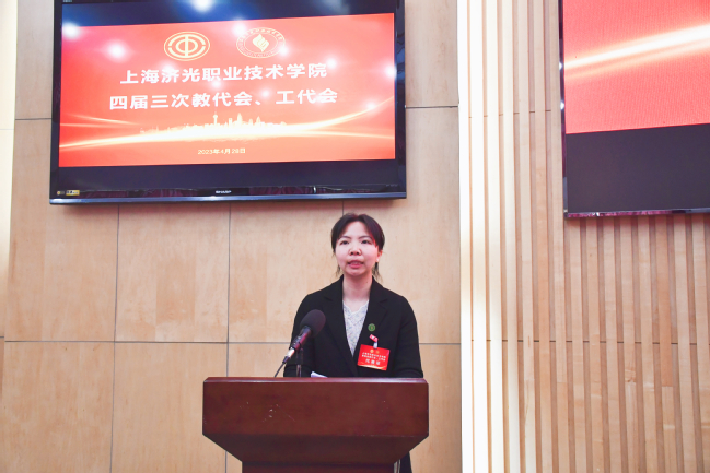 财务处处长助理陈洁作《2022年度学校财务情况报告》;工会副主席黄琪通报了四届二次双代会提案处理和四届三次双代会提案征集情况,并书面下发了《2022年度学校工会工作报告》、《2022年度学校工会经费审查工作报告》。与会代表对校领导班子成员和领导班子进行了民主评议,表决通过了四届三次双代会决议。