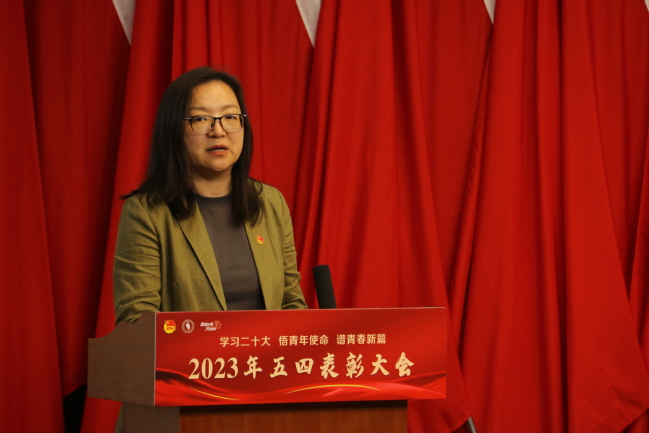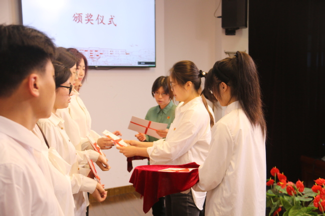 校团委书记邓婷婷宣读《关于2022-2023学年上海济光职业技术学院优秀共青团员、优秀共青团干部及特色团支部名单的表彰决定》,校领导及各二级学院党总支、直属党支部书记为获奖代表颁发荣誉证书。