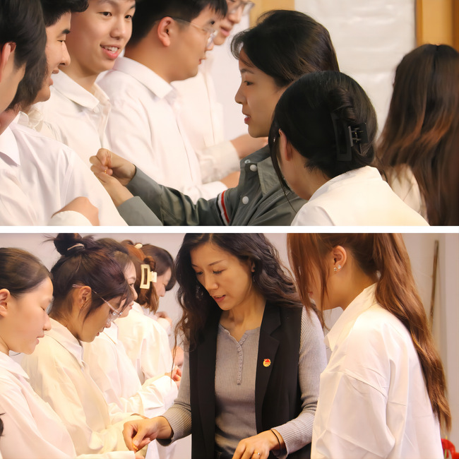 ▲新团员佩戴团徽仪式