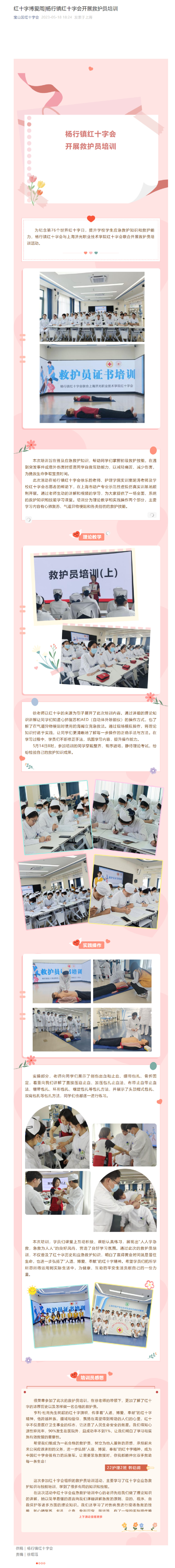 宝山区红十字会微信公众号对我校与宝山区红十字会联合开展救护员培训活动进行了专题报道
