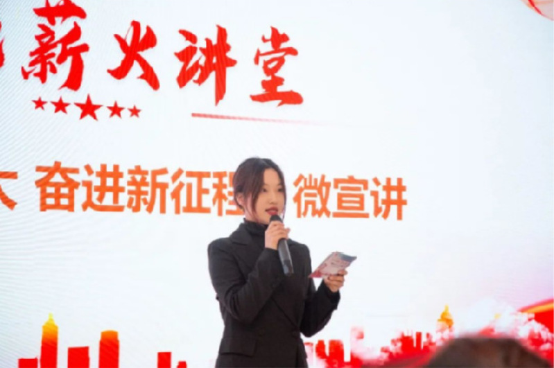 赵静茹老师围绕党的二十大报告,从新时代十年的伟大变革、三件大事、六个坚持、新时代党的使命任务等内容进行讲解,结合自身工作生活实际,交流分享学习体会。通过自己对党的二十大盛会的所见所闻、所思所悟,引领听众在一个又一个鲜活的故事与案例中学习“坚持党的领导是中国特色社会主义的最大优势”的意义,感悟中国共产党是如何贯彻“全心全意为人民服务”的宗旨,牢牢树立“听党话、跟党走”的信念,筑牢为实现中华民族伟大复兴而奋斗的信仰根基。深入浅出的解读、提气鼓劲的话语、生动鲜活的案例,引发聆听者强烈共鸣。
