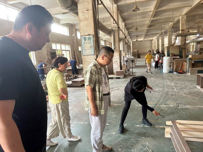 ▲副校长王云飞带队在家具生产现场检查工作